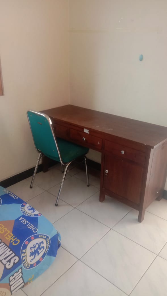 Meja Belajar Jati Yang Panjang, & Kursi Belajar Besi Standar Sni